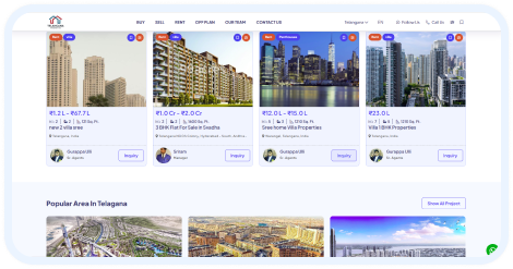 Telangana Properties is your go-to platform for buying, selling, and renting properties in the vibrant region of Telangana. Whether you're looking for a cozy apartment, a spacious house, or commercial space, we offer a diverse range of listings to cater to your needs. Our user-friendly website ensures a seamless browsing experience, making property searches faster and more efficient. Each listing provides detailed information, including photos, pricing, and key features. We offer expert guidance throughout the buying or renting process to ensure a smooth transaction. Our commitment is to make your real estate journey hassle-fre... Read More